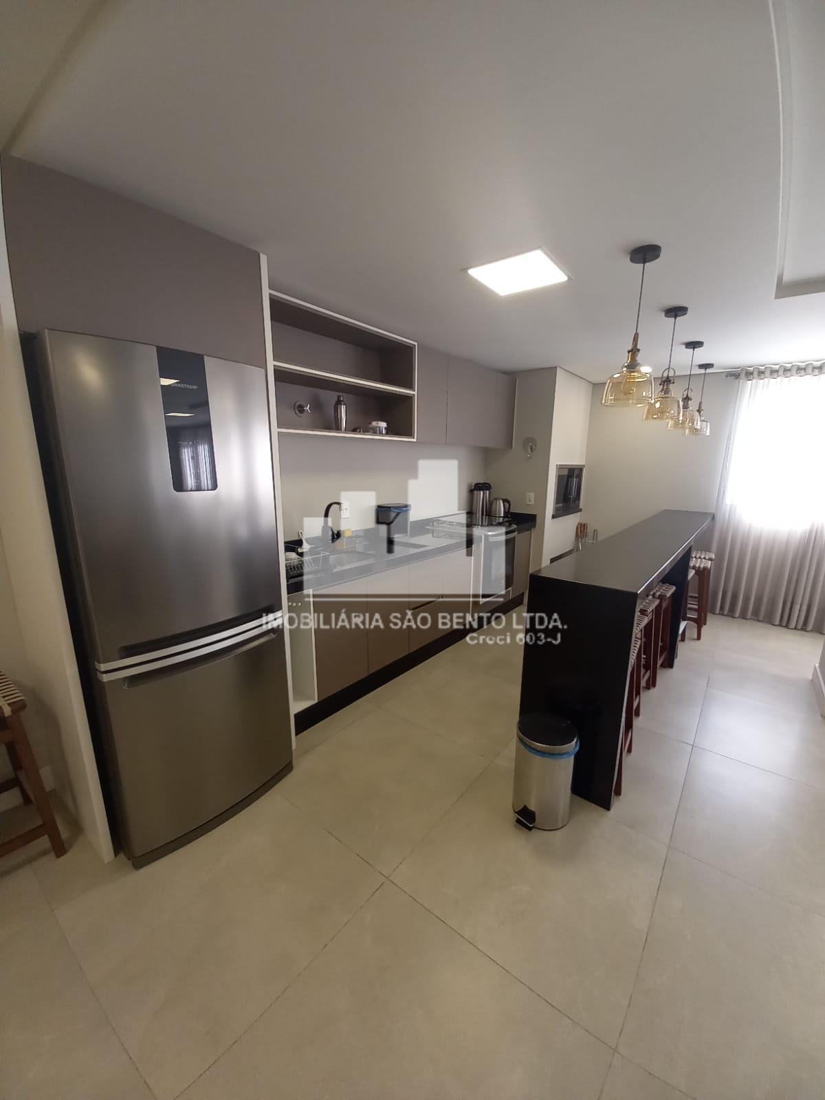 Contendo: Sala, cozinha com móveis planejados, três dormitórios sendo uma suíte, banheiro social, área de serviços e sacada com churrasqueira.